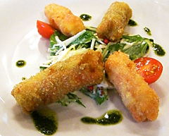 生ハムで巻いたマコモのフリット
